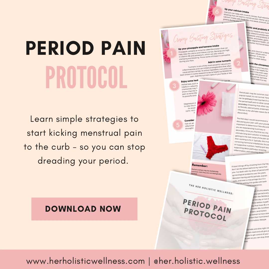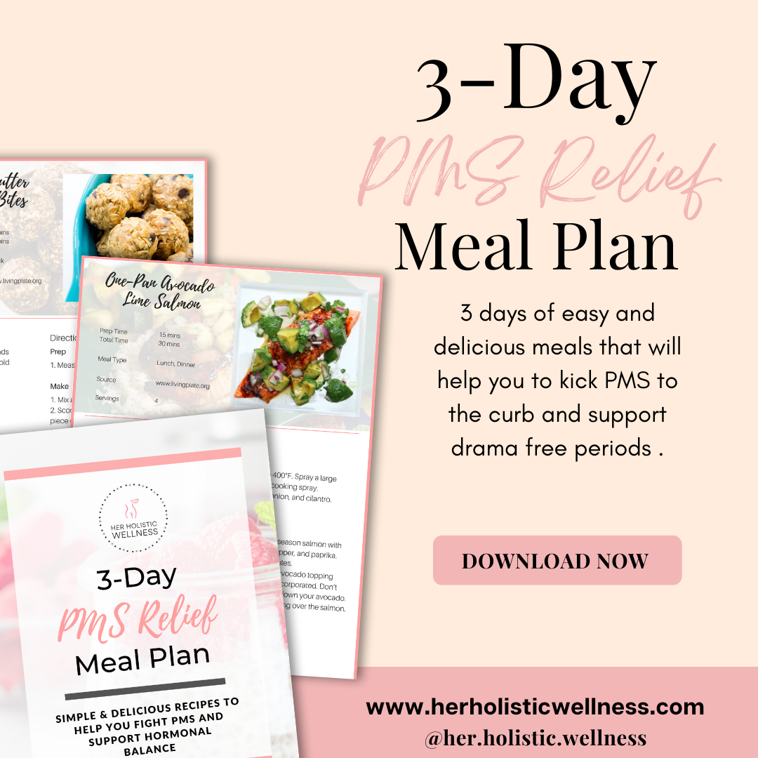 Enjoy some complimentary resources to help you on your journey to easy periods and hormone harmony. Freebies 〰️ Freebies 〰️ Freebies 〰️ 3-Day PMS Relief Meal Plan Easy and quick meals to support PMS free, drama-less periods Grab Your Meal Plan Loading... Thank you! You have successfully joined our subscriber list. Period Pain Protocol Easy strategies to kick period pain to the curb Grab Your Protocol Loading... Its on the way! Check your email for your protocol.